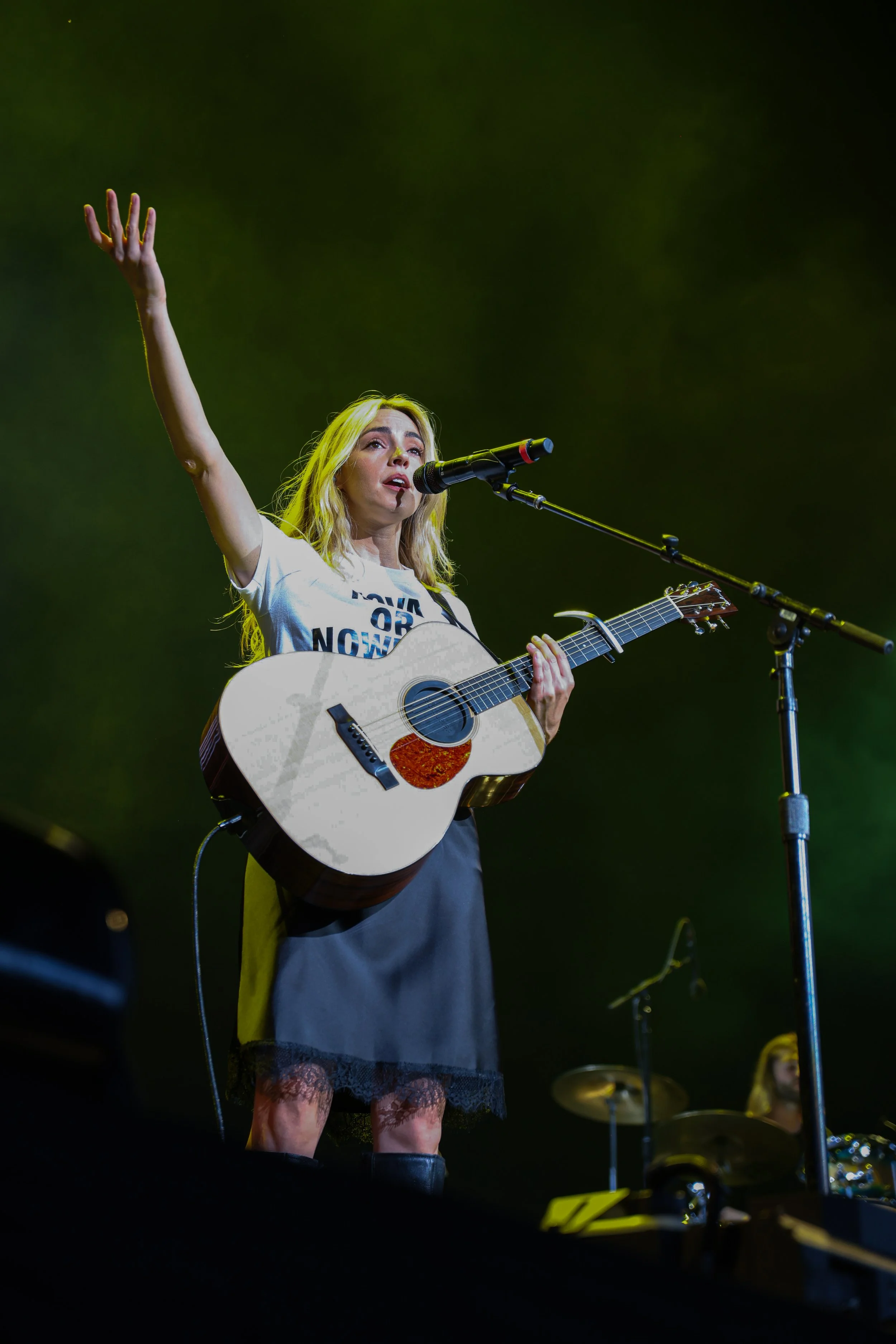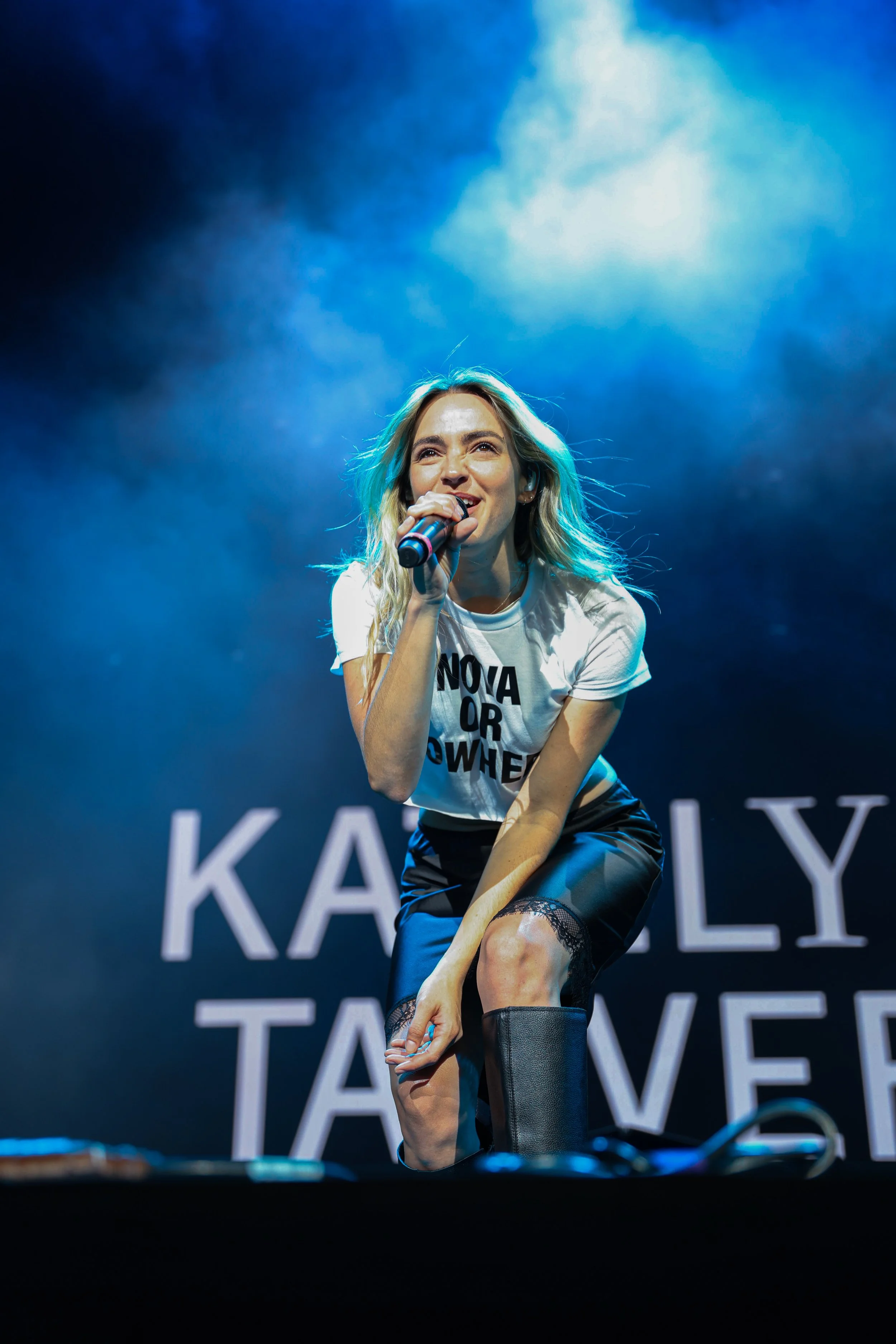 This night was unforgettable from the start. As the crowd filled each seat with friends, family, signs, helmets, tree hats, and bandanas, you could feel the excitement in the air. At the start of the show the crowd was welcomed by Stephen Kramer who played a killer set of covers including his rendition of Pink Pony Club, which is a TikTok favorite! Shortly after, Katelyn welcomed us with her solo music, earning the hearts of the audience. Then, it was time for the main event. The boys came out with their hit single “Big Time Rush” and the rest was history. Although this show featured multiple special segments, including the traditional ‘go into the crowd and picking a worldwide girl,’ they also included a special segment where the band sat around a piano (played by Stephen) and sang the songs similarly to how they would in the television show. They also sang from a b stage in the middle of the crowd and performed acoustic versions of some of their big hits.