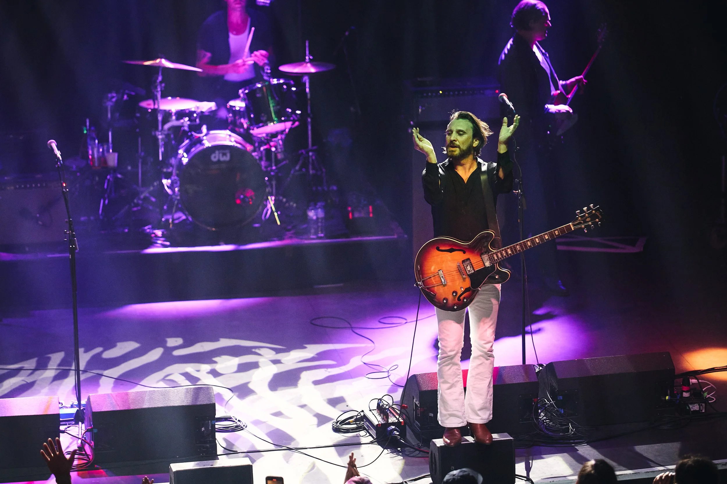To start the night JET performed a handful of songs outside of “Get Born,” beginning with “Put Your Money Where Your Mouth Is” which is the lead single from their second studio album. Audience members were also treated to an upbeat performance of JET’s latest single, and first single in 15 years - “Hurry Hurry.” Nic Cester recently revealed this to be “a little appetizer” as they work on their new album - something for fans to look forward to! After a handful of songs covering the breadth of their discography, JET moved on to performing the entirety of their classic “Get Born” album, as the tour is celebrating the album, after all. They played the album front to back so fans knew exactly what was coming next. The tambo comes out and that iconic bass line kicks in as early 2000s indie rock anthem “Are You Gonna Be My Girl” immediately summoned people to their feet. All night, people were dancing on the staircases and making memories with loved ones; it was wonderful seeing the way JET brought people from all different generations together. JET made their way through “Get Born” track by track, finishing on the last song ‘Timothy’ which was beautifully vocally lead by Cam.